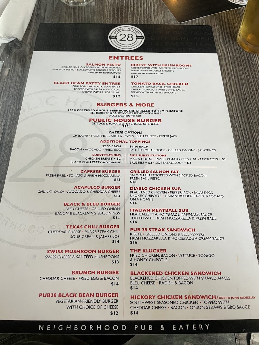Two Smash patties, American cheese, lettuce, onions, pickles, and Pub28 sauce on a brioche bun